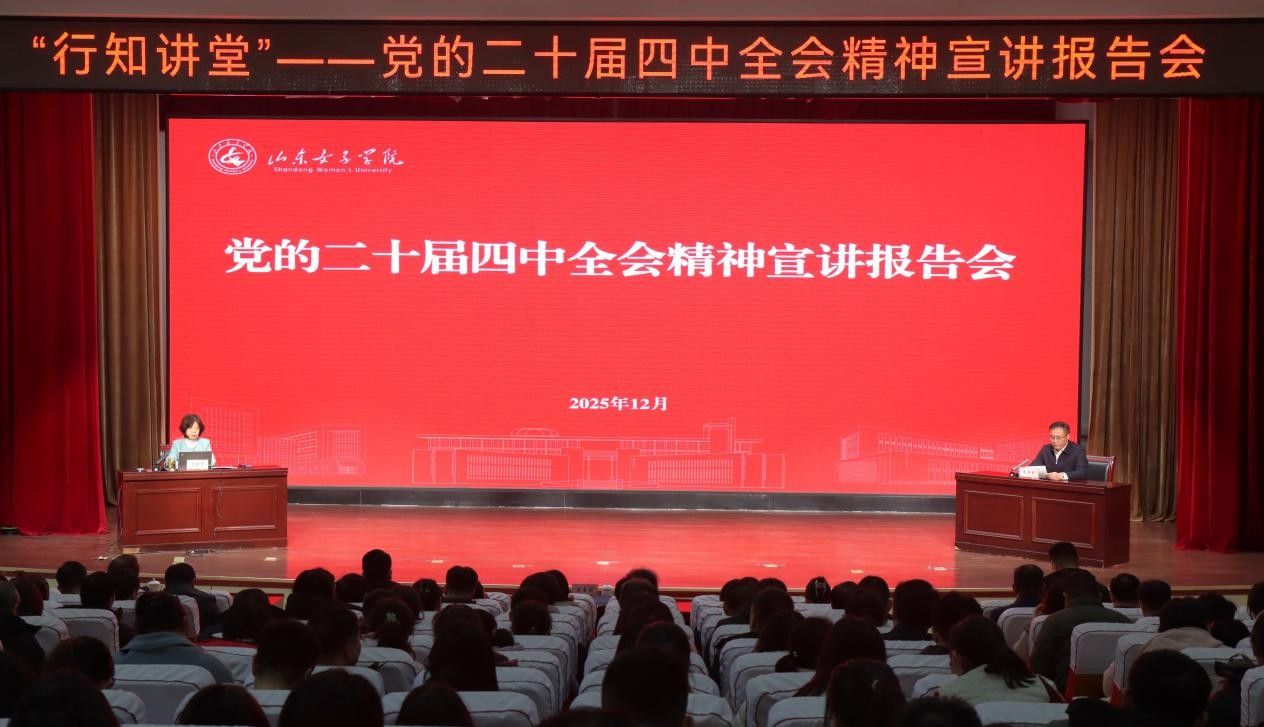 12月16日下午,山东高校学习贯彻党的二十届四中全会精神宣讲团成员、学校党委书记吕晓黎在图书馆二楼报告厅为干部师生宣讲党的二十届四中全会精神。党委副书记龙希利主持报告会。学校处科级干部、党支部书记、思政课教师、学生代表等300余人参加报告会。