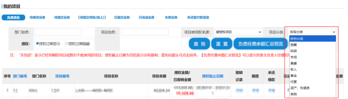 2.项目检索条件更加详细,“项目分类”条件可根据预算、科研、专项等项目类型进行分项查询。