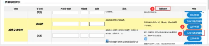 3.其他交通费用新增“市内交通费明细”,请如实填写。